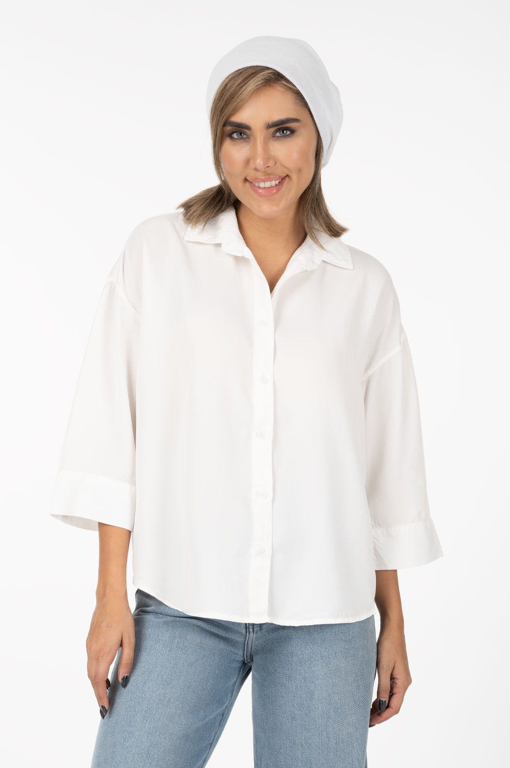 شومیز رویال جین کتان(سیلک) پایین هلال بدون جیب