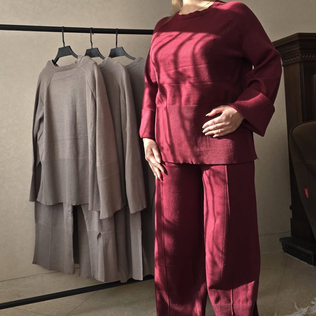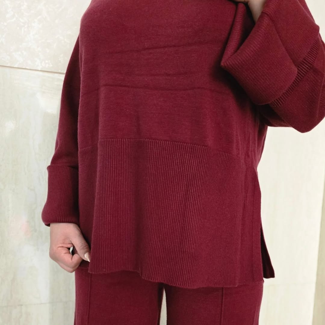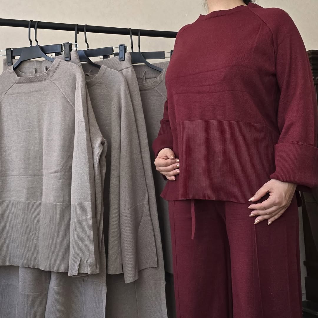 ست بلوز و شلوار بافت وارداتی سایز ۴۰ تا ۵۰ موجود در رنگ زرشکی و طوسی با کیفیت و گرم و لطیف خرید دو مرحله ای امکان تعویض و مرجوعی تا ۲۴ ساعت پس از تحویل