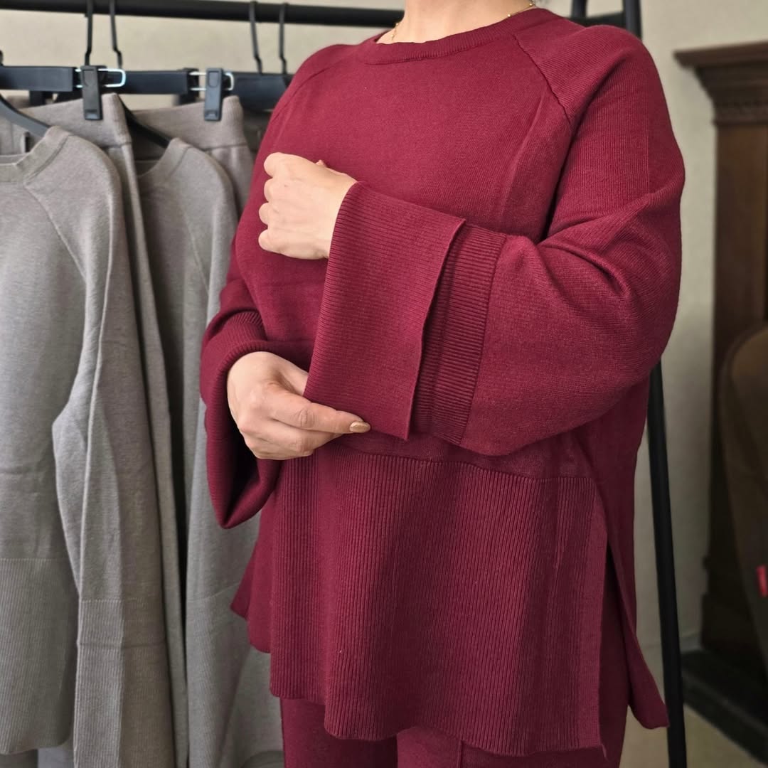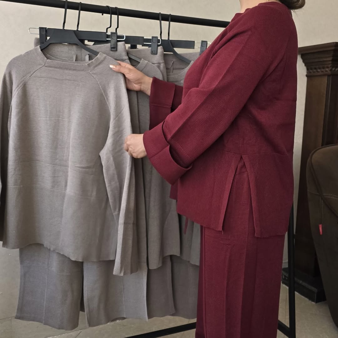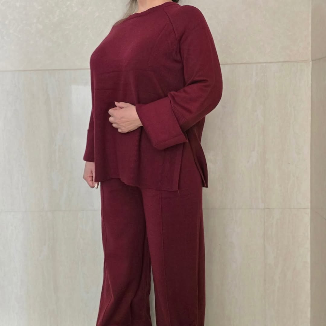 ست بلوز و شلوار بافت وارداتی سایز ۴۰ تا ۵۰ موجود در رنگ زرشکی و طوسی با کیفیت و گرم و لطیف خرید دو مرحله ای امکان تعویض و مرجوعی تا ۲۴ ساعت پس از تحویل
