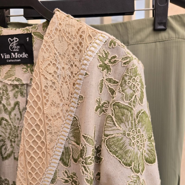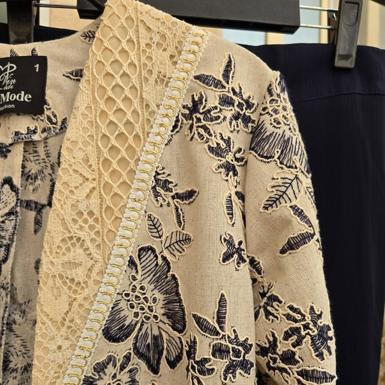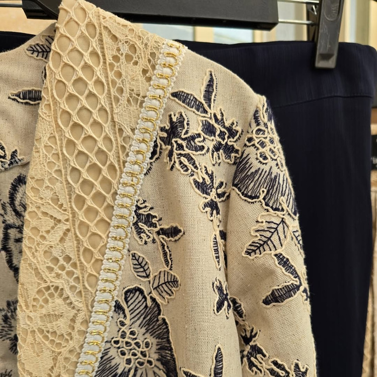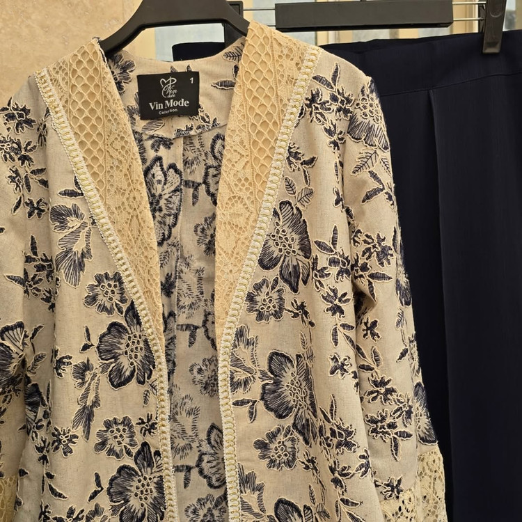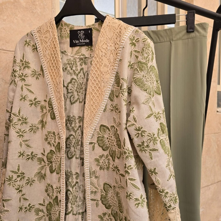 کت لینن گلدوزیشده با دوخت تمیز و جزئیات خاص + شلوار لخت و خوشفرم مناسب مجالس و مهمونیها