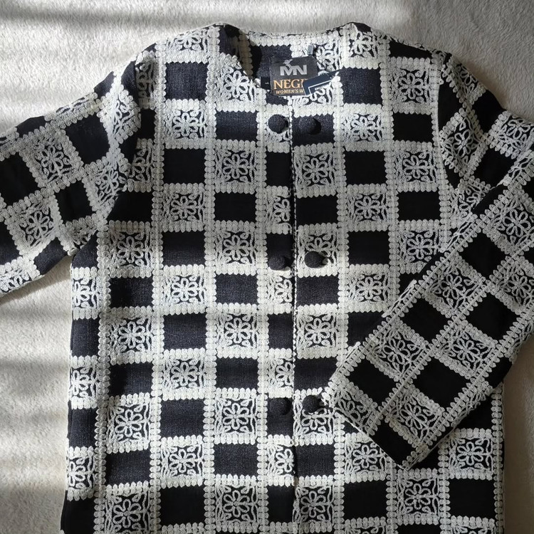 مشحصات کت: دور سینه ۱۰۲ با توجه به اینکه جلو باز هست تا ۵ الی ۶ سانت راه داره | قد : ۶۲ |قد آستین : ۵۷