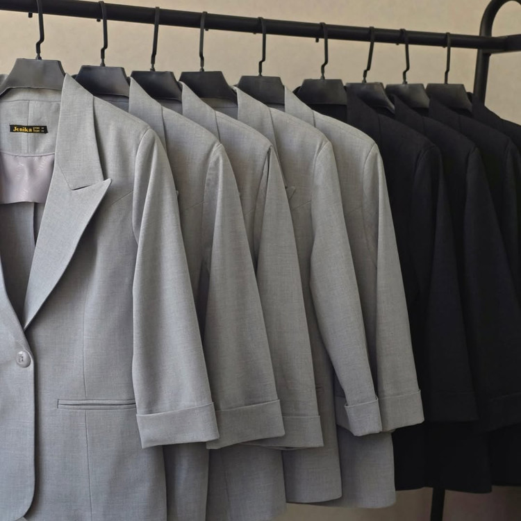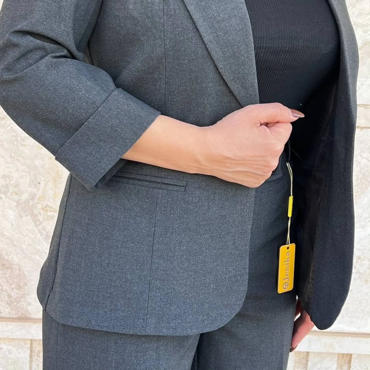 کت تک دکمه با کیفیت عالی و دوخت تمیز، همچنین شامل شلوار نیمبگ در دو رنگ مشکی و زغالی. این کت با سه رنگ طوسی، مشکی و زغالی موجود است و برای استایل خاص و شیک بهترین گزینه است.