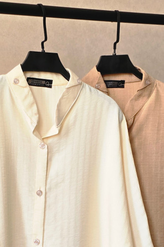 شومیز رویال جین کتان(سیلک) پایین هلال بدون جیب